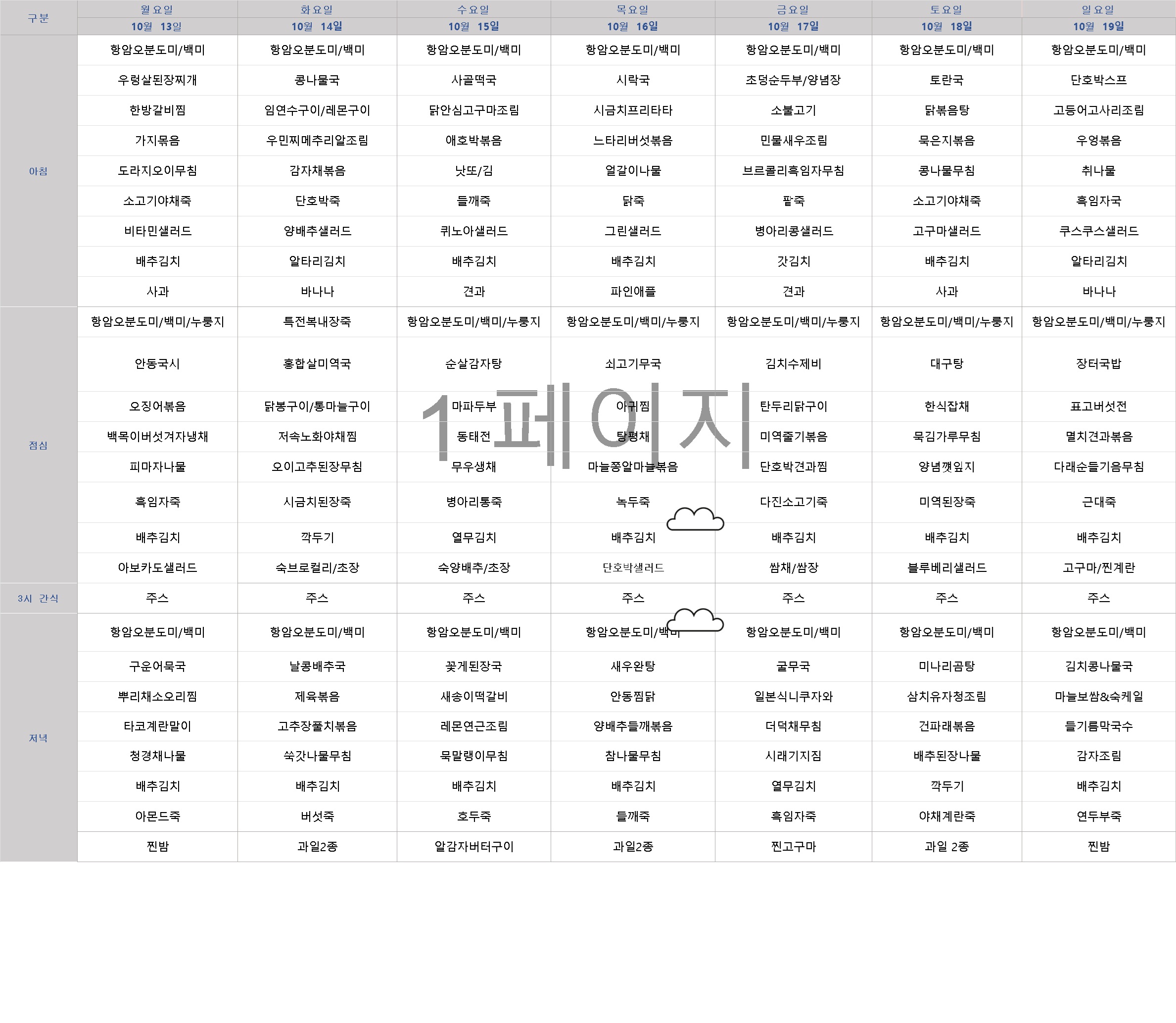 | Á¦¸ñ | 2025.10.13~10.19 ÁÖ°£½Ä´ÜÇ¥ ¾È³» |