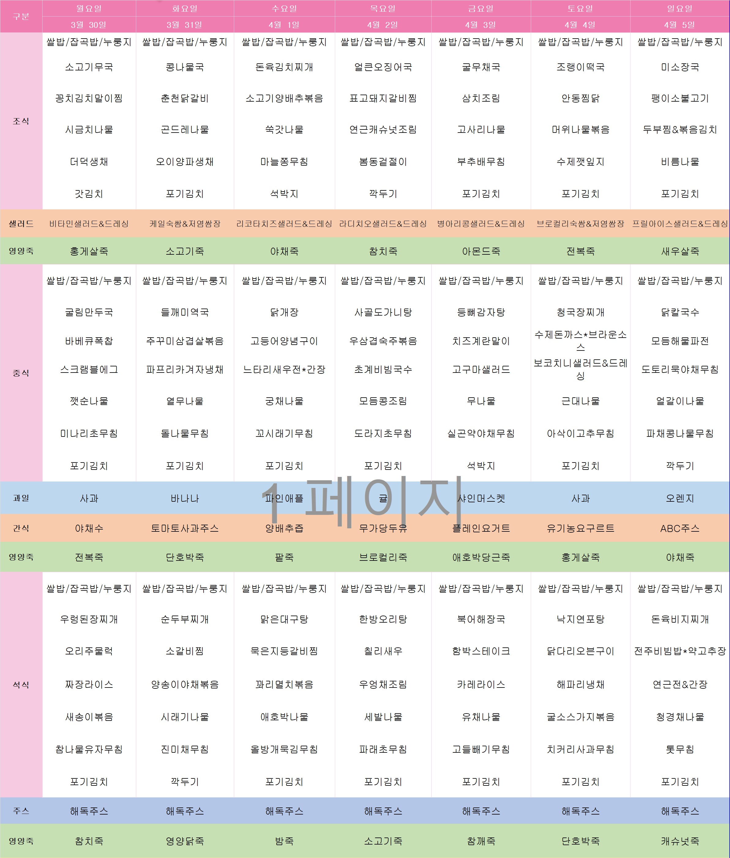 | Á¦¸ñ | 2026.03.30~04.05ÁÖ°£½Ä´ÜÇ¥ ¾È³» |