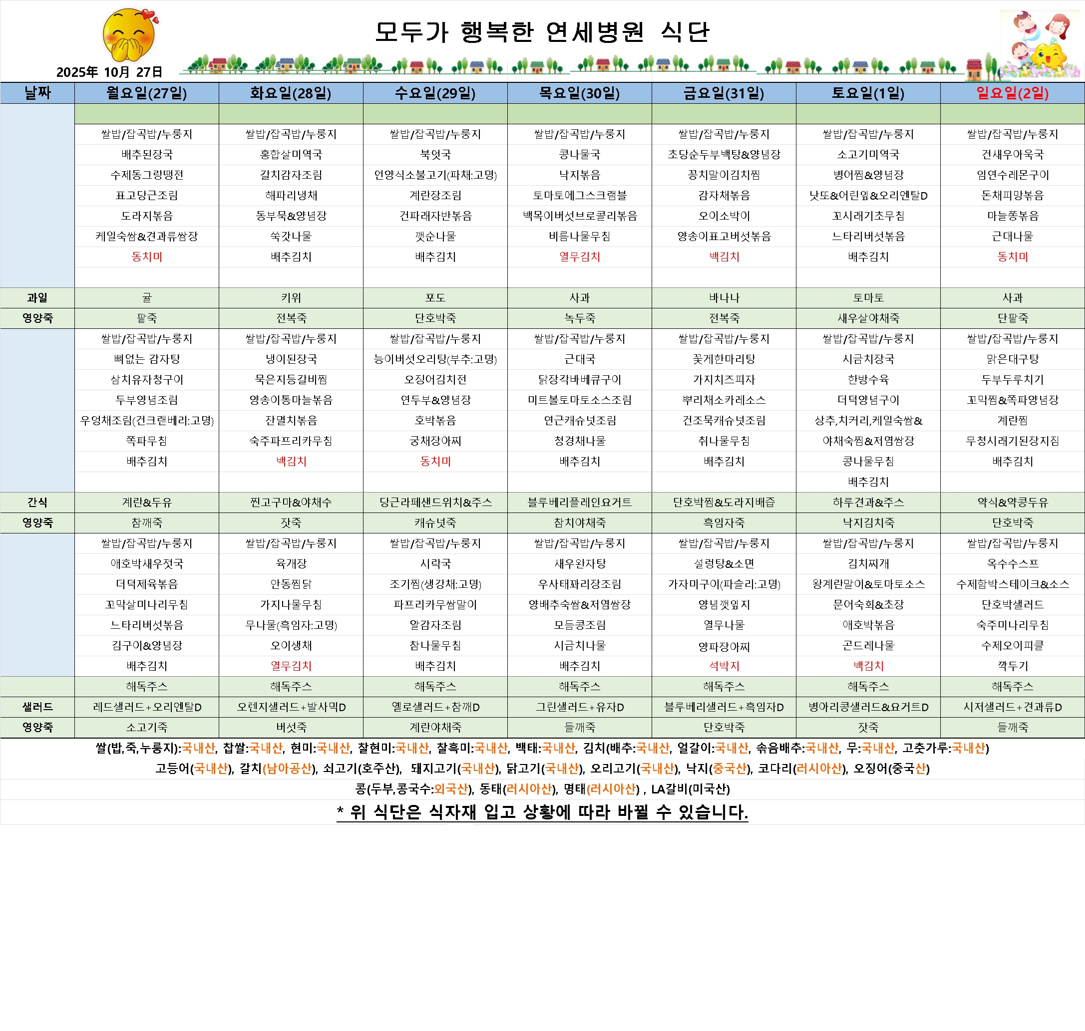 | Á¦¸ñ | 2025.10.27~11.02 ÁÖ°£½Ä´ÜÇ¥ ¾È³» |